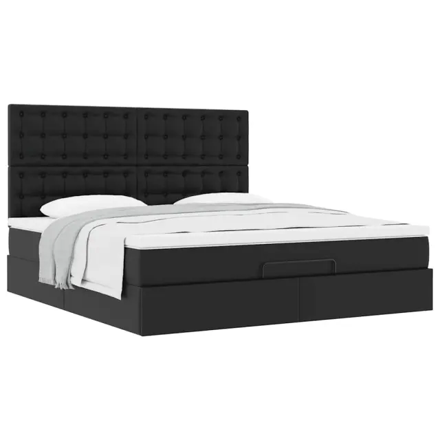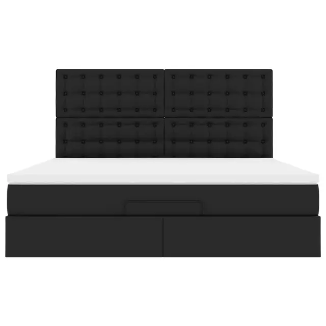 vidaXL Otomanski posteljni okvir z vzmetnico črn 160x200 cm um. usnje