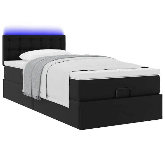 vidaXL Otomanski posteljni okvir z vzmetnico črn 80x200 cm um. usnje