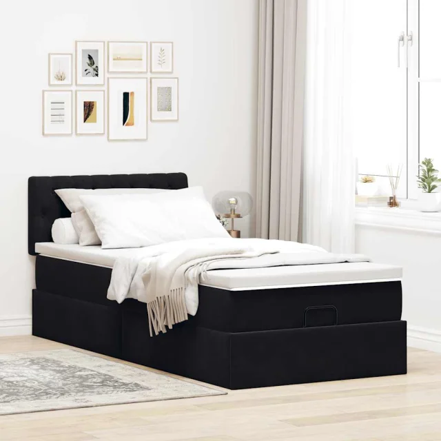 vidaXL Otomanski posteljni okvir z vzmetnico črn 80x200 cm žamet