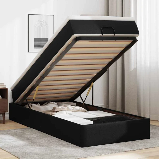 S tem okvirjem za posteljo otoman z ležiščem lahko uživate v mirnem spancu! Ponuja vam rešitev za shranjevanje in udobno spanje.