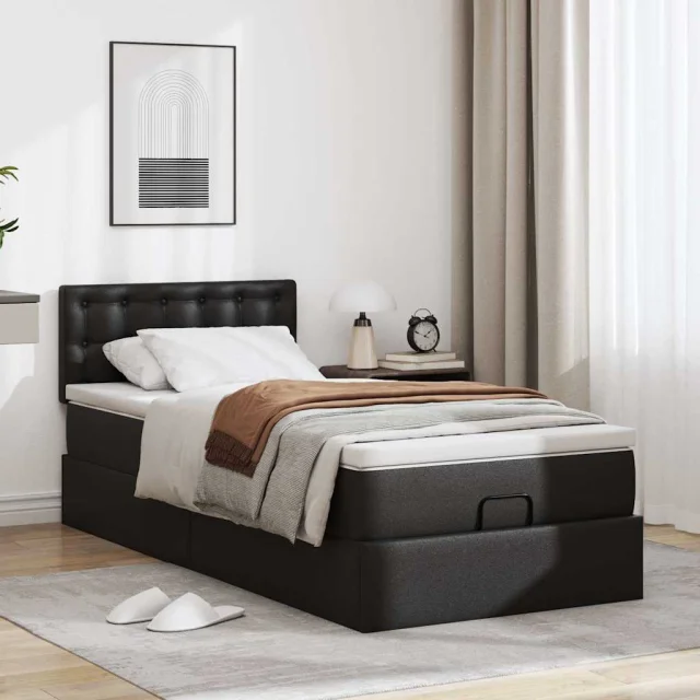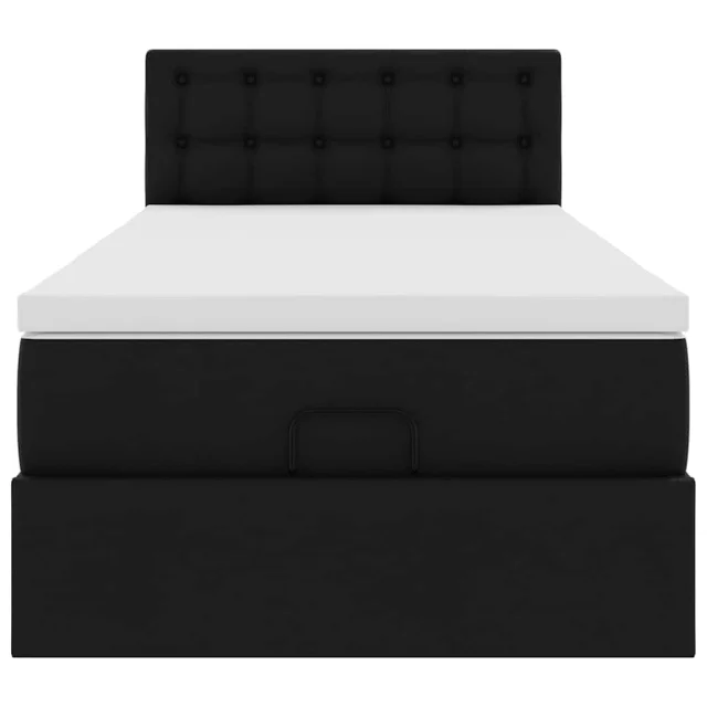vidaXL Otomanski posteljni okvir z vzmetnico črn 90x200 cm um. usnje
