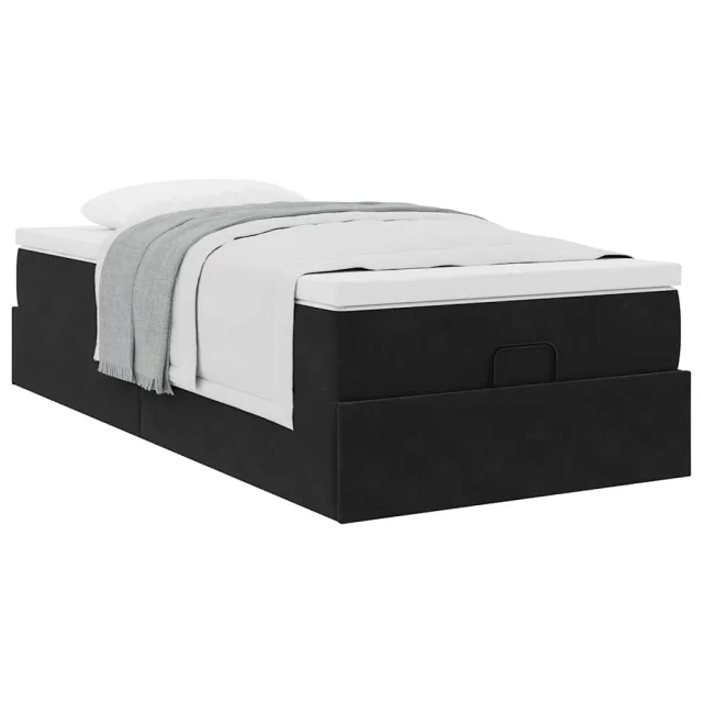 vidaXL Otomanski posteljni okvir z vzmetnico črn 90x200 cm žamet