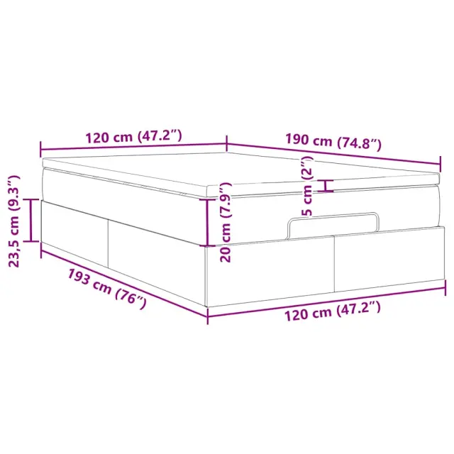 • Celotne dimenzije: 193 x 120 x 23,5 cm (D x Š x V)
