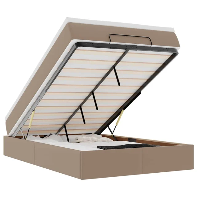 S tem okvirjem za posteljo otoman z ležiščem lahko uživate v mirnem spancu! Ponuja vam rešitev za shranjevanje in udobno spanje.
