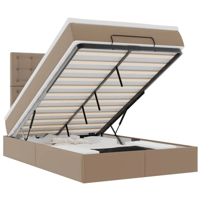 S tem okvirjem za posteljo otoman z ležiščem lahko uživate v mirnem spancu! Ponuja vam rešitev za shranjevanje in udobno spanje.