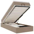 • Veliko prostora za shranjevanje pod posteljo: Zahvaljujoč hidravličnemu dvižnemu mehanizmu je pod posteljnim okvirjem na voljo veliko prostora za shranjevanje pod posteljo, kar povečuje prostor, ne da bi zavzemal dodatno talno površino. S preprostim potegom ročaja se podnožje z letvami gladko dvigne, tako da lahko hitro in brez napora poberete svoje predmete.