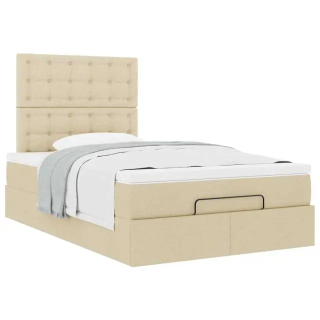 vidaXL Otomanski posteljni okvir z vzmetnico krem 120x200 cm blago