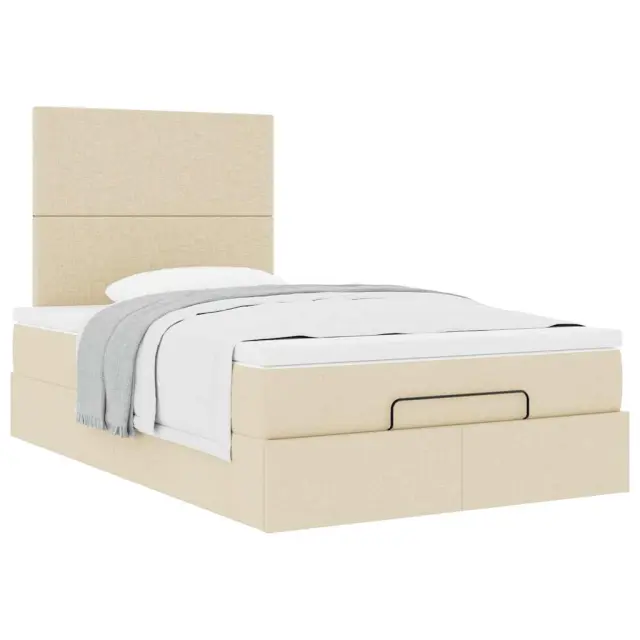 vidaXL Otomanski posteljni okvir z vzmetnico krem 120x200 cm blago