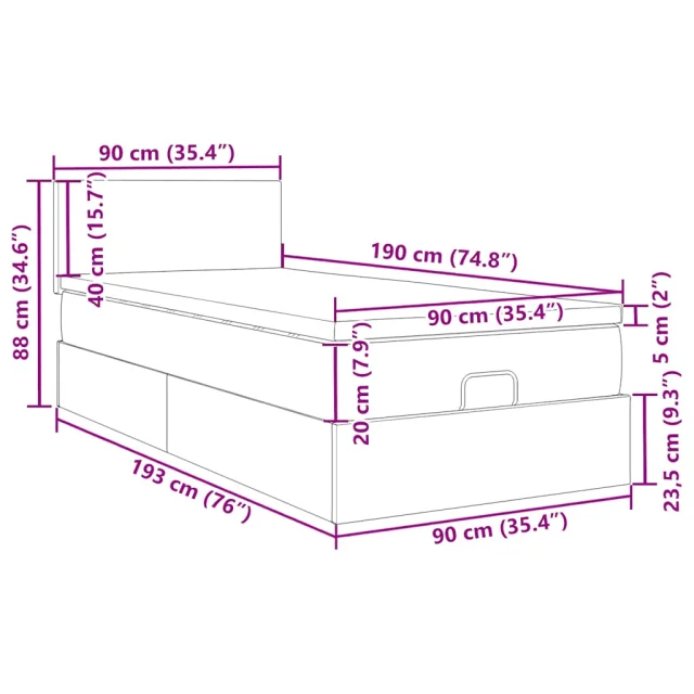 • Dimenzije: 90 x 190 x 20 cm (Š x D x V)