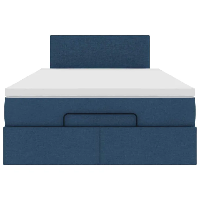 vidaXL Otomanski posteljni okvir z vzmetnico moder 120x190 cm blago