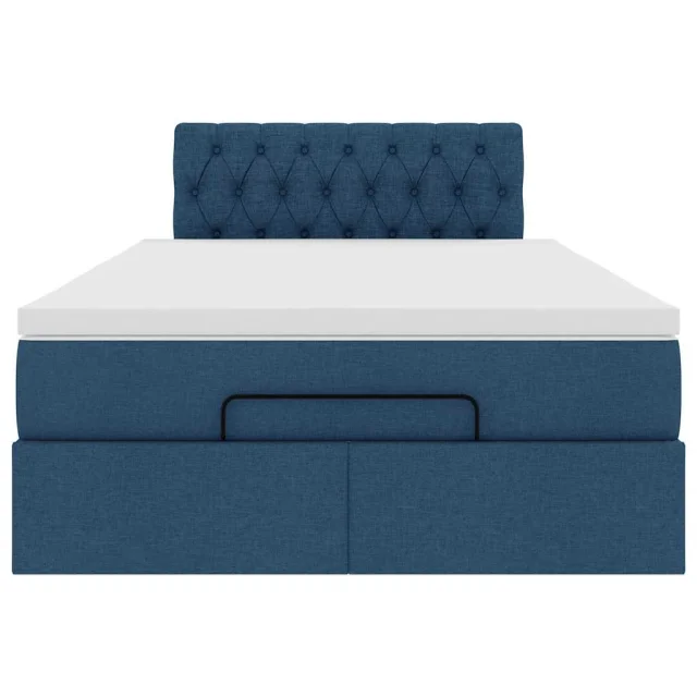 vidaXL Otomanski posteljni okvir z vzmetnico moder 120x190 cm blago