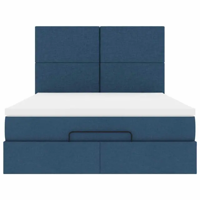 vidaXL Otomanski posteljni okvir z vzmetnico moder 140x200 cm blago
