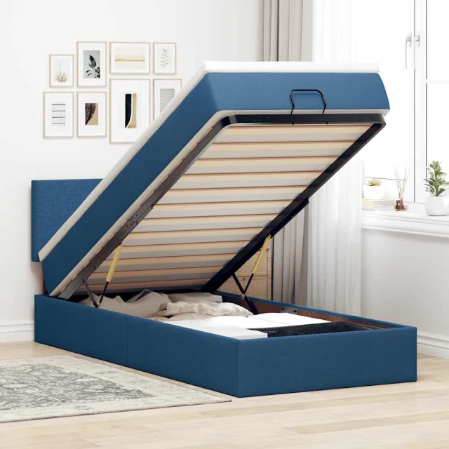 S tem okvirjem za posteljo otoman z ležiščem lahko uživate v mirnem spancu! Ponuja vam rešitev za shranjevanje in udobno spanje.