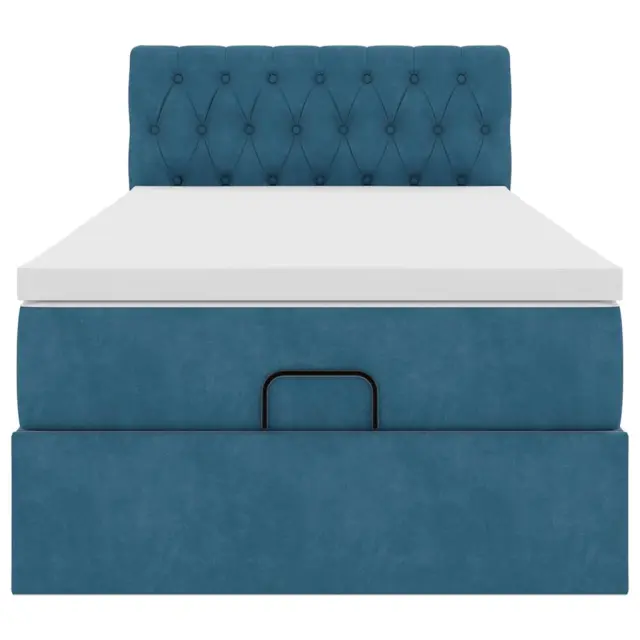vidaXL Otomanski posteljni okvir z vzmetnico moder 90x190 cm žamet