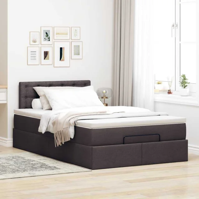 vidaXL Otomanski posteljni okvir z vzmetnico rjav 120x190 cm blago