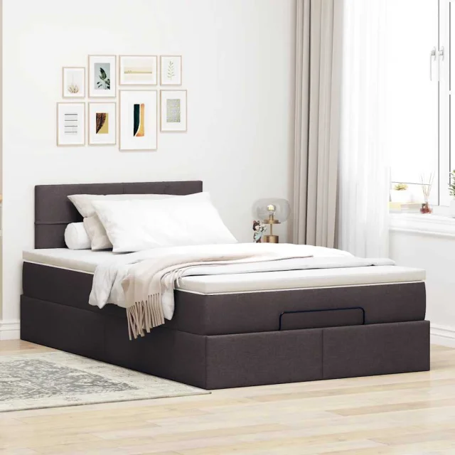 vidaXL Otomanski posteljni okvir z vzmetnico rjav 120x190 cm blago