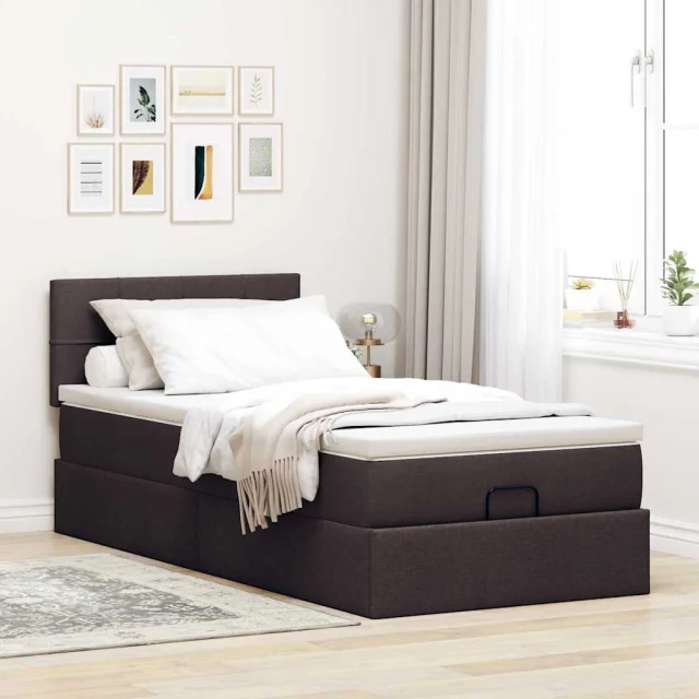 vidaXL Otomanski posteljni okvir z vzmetnico rjav 90x190 cm blago