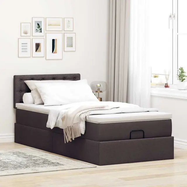 vidaXL Otomanski posteljni okvir z vzmetnico rjav 90x190 cm blago