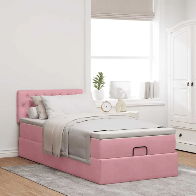 vidaXL Otomanski posteljni okvir z vzmetnico roza 90x200 cm žamet
