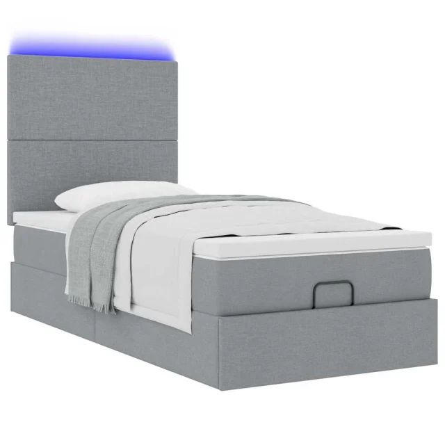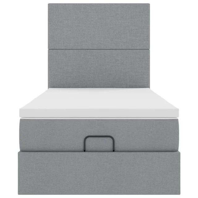 vidaXL Otomanski posteljni okvir z vzmetnico siv 100x200 cm blago