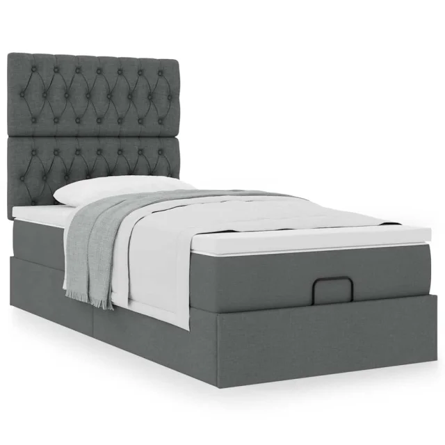 vidaXL Otomanski posteljni okvir z vzmetnico siv 100x200 cm blago
