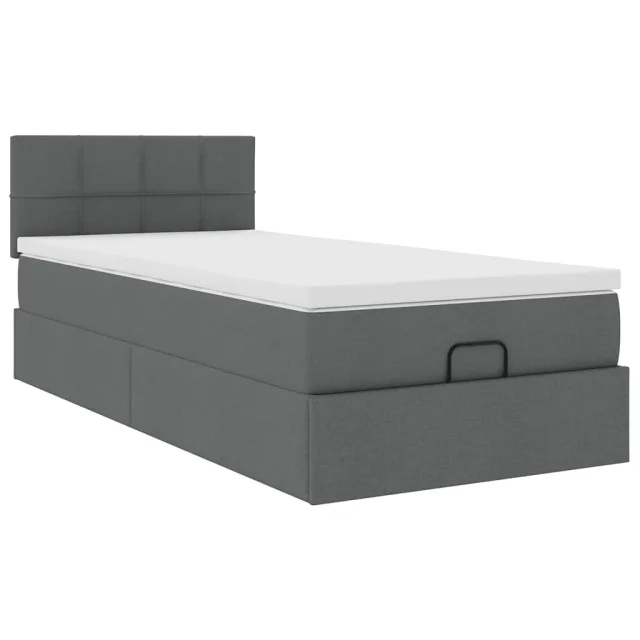 vidaXL Otomanski posteljni okvir z vzmetnico siv 100x200 cm blago