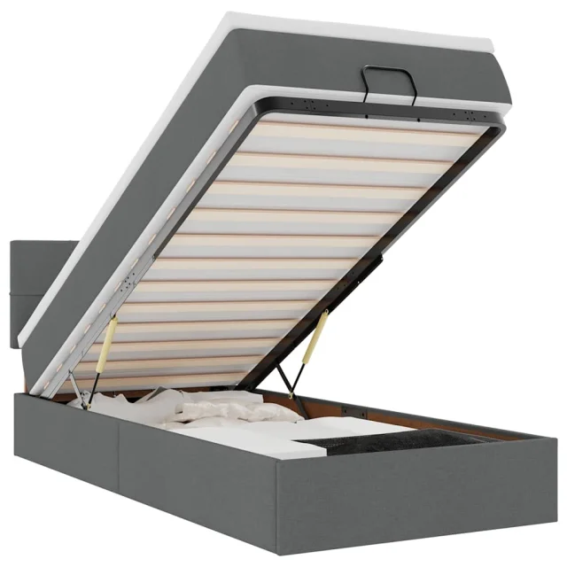 S tem okvirjem za posteljo otoman z ležiščem lahko uživate v mirnem spancu! Ponuja vam rešitev za shranjevanje in udobno spanje.