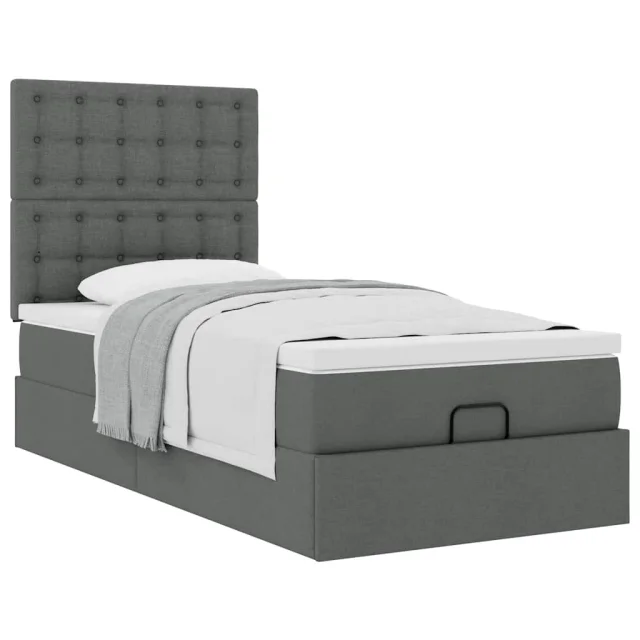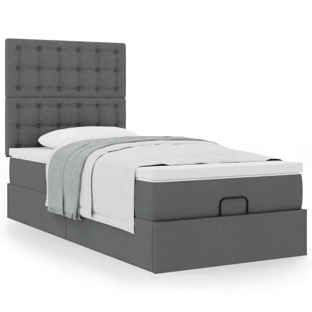 vidaXL Otomanski posteljni okvir z vzmetnico siv 100x200 cm blago