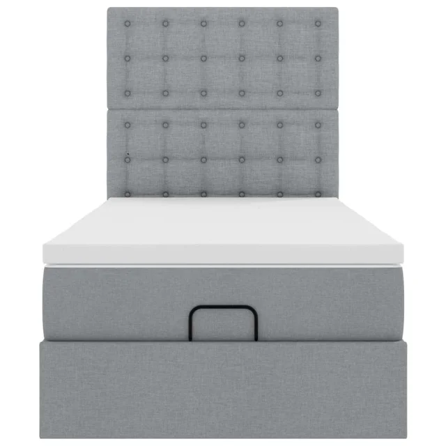 vidaXL Otomanski posteljni okvir z vzmetnico siv 100x200 cm blago