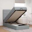 • Veliko prostora za shranjevanje pod posteljo: Zahvaljujoč hidravličnemu dvižnemu mehanizmu je pod posteljnim okvirjem na voljo veliko prostora za shranjevanje pod posteljo, kar povečuje prostor, ne da bi zavzemal dodatno talno površino. S preprostim potegom ročaja se podnožje z letvami gladko dvigne, tako da lahko hitro in brez napora poberete svoje predmete.