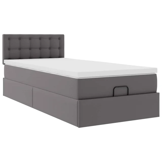 vidaXL Otomanski posteljni okvir z vzmetnico siv 100x200 cm um. usnje