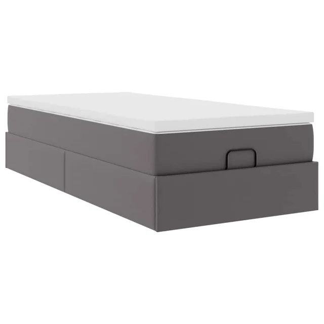 vidaXL Otomanski posteljni okvir z vzmetnico siv 100x200 cm um. usnje