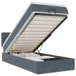 • Veliko prostora za shranjevanje pod posteljo: Zahvaljujoč hidravličnemu dvižnemu mehanizmu je pod posteljnim okvirjem na voljo veliko prostora za shranjevanje pod posteljo, kar povečuje prostor, ne da bi zavzemal dodatno talno površino. S preprostim potegom ročaja se podnožje z letvami gladko dvigne, tako da lahko hitro in brez napora poberete svoje predmete.