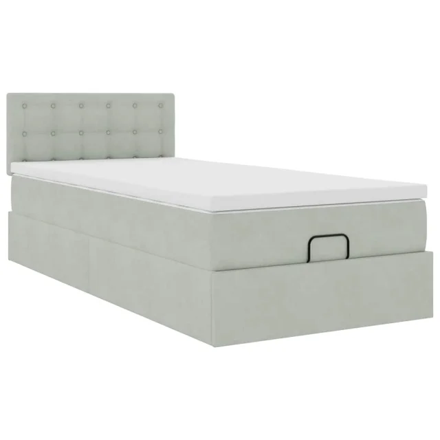 vidaXL Otomanski posteljni okvir z vzmetnico siv 100x200 cm žamet