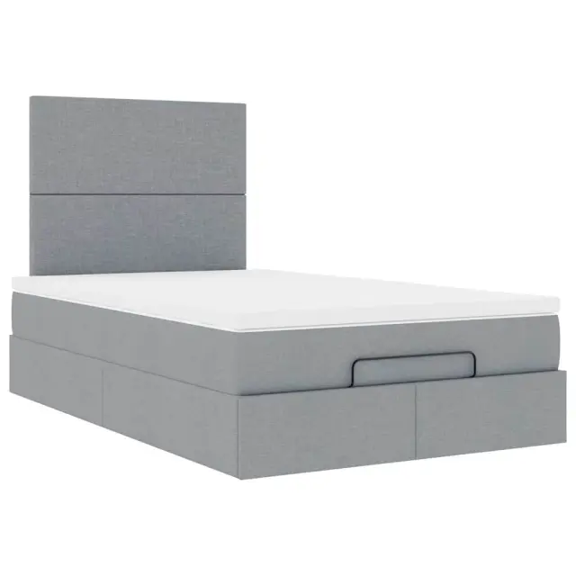 vidaXL Otomanski posteljni okvir z vzmetnico siv 120x190 cm blago