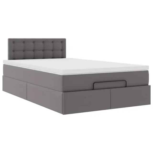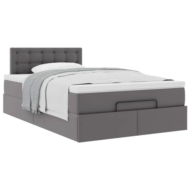 vidaXL Otomanski posteljni okvir z vzmetnico siv 120x190 cm um. usnje