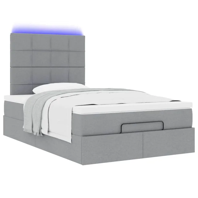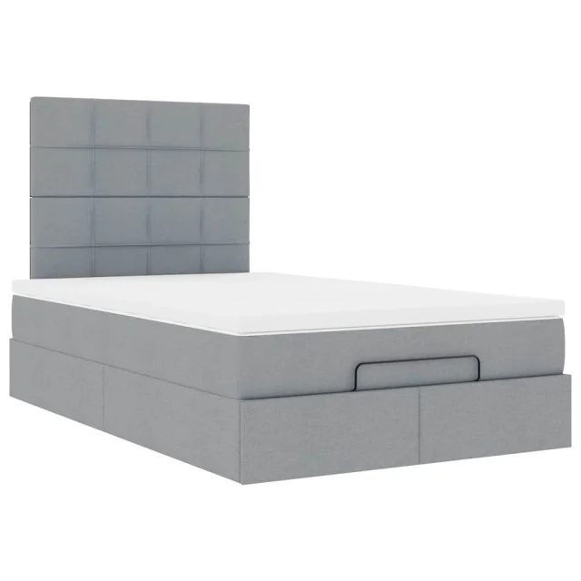 vidaXL Otomanski posteljni okvir z vzmetnico siv 120x200 cm blago
