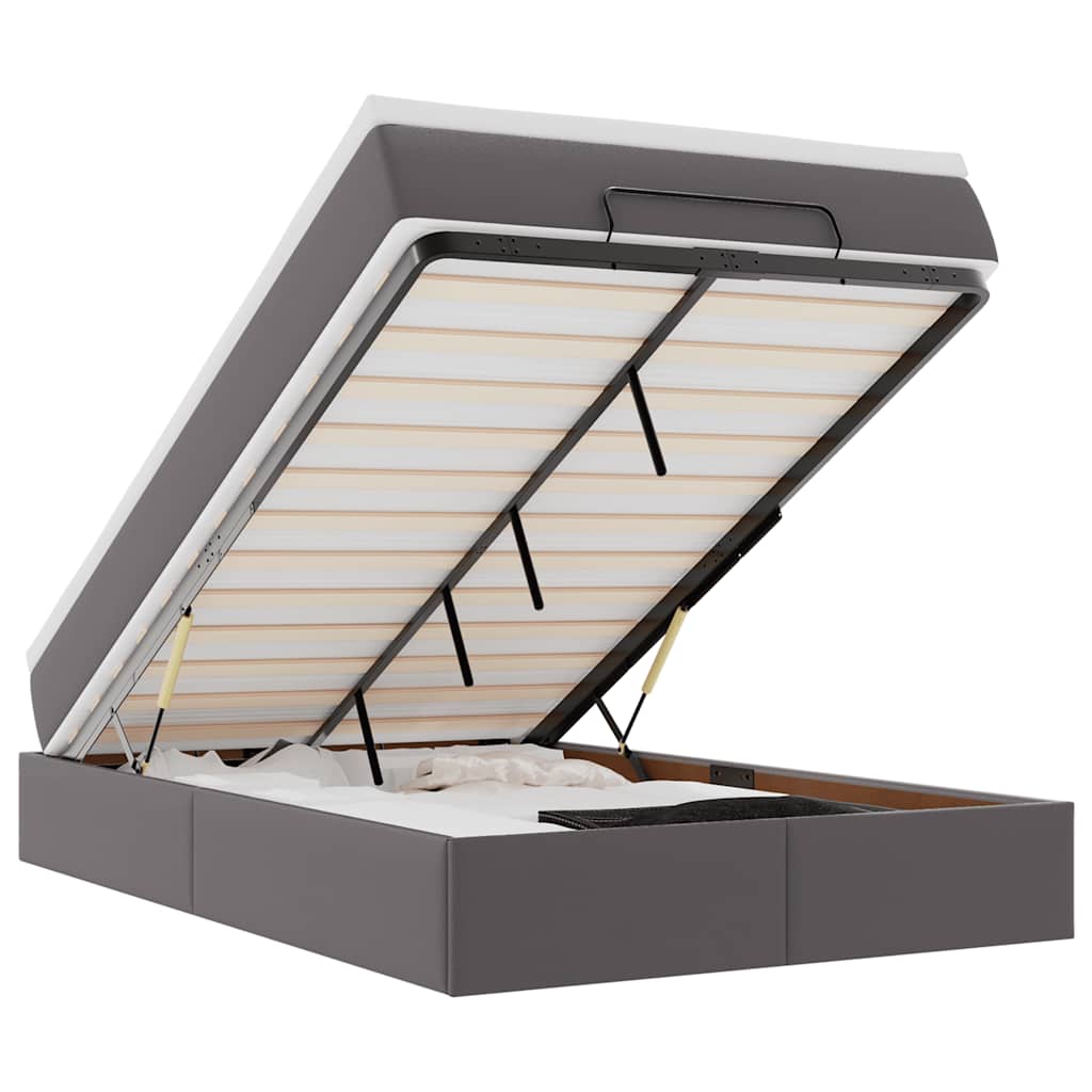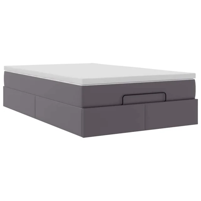 vidaXL Otomanski posteljni okvir z vzmetnico siv 120x200 cm um. usnje