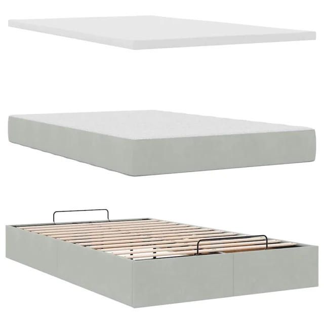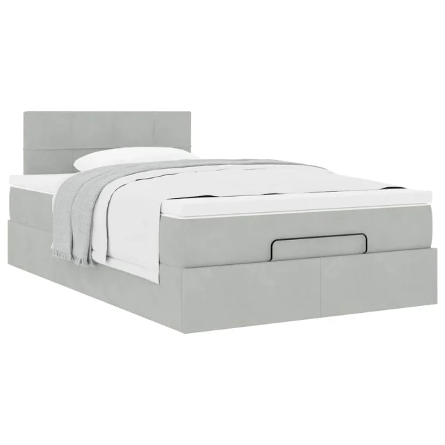 vidaXL Otomanski posteljni okvir z vzmetnico siv 120x200 cm žamet