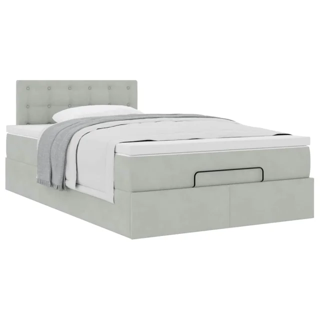 vidaXL Otomanski posteljni okvir z vzmetnico siv 120x200 cm žamet