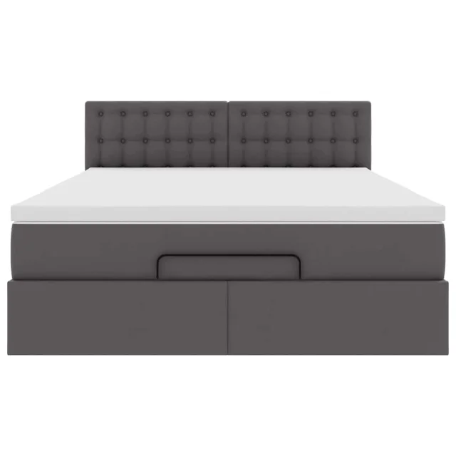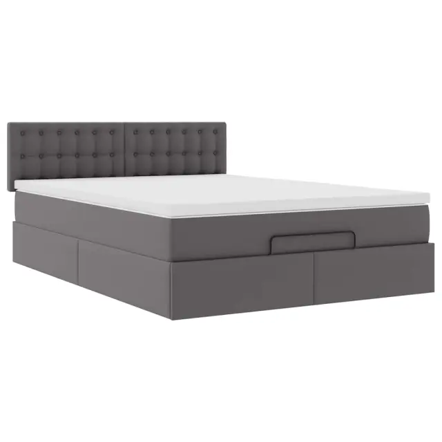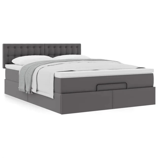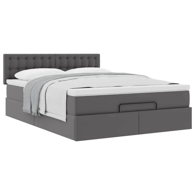 vidaXL Otomanski posteljni okvir z vzmetnico siv 140x190 cm um. usnje