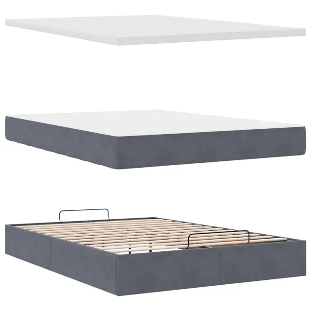 S tem okvirjem za posteljo otoman z ležiščem lahko uživate v mirnem spancu! Ponuja vam rešitev za shranjevanje in udobno spanje.