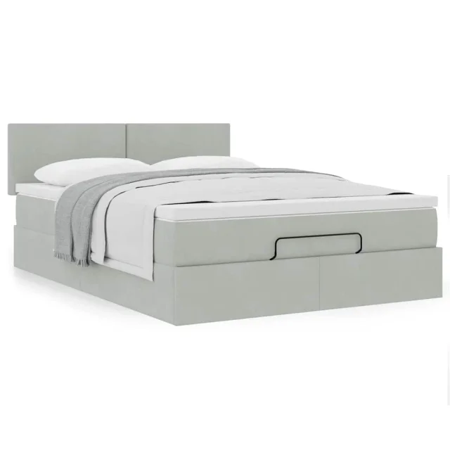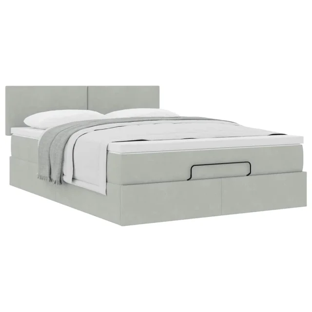 vidaXL Otomanski posteljni okvir z vzmetnico siv 140x190 cm žamet