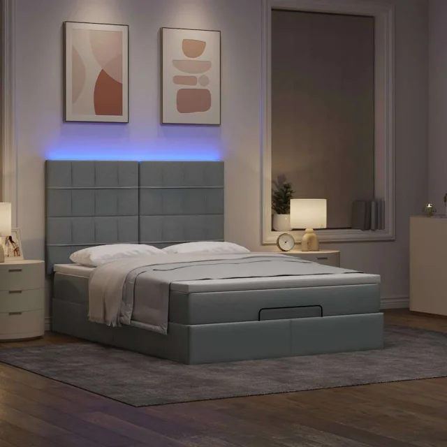 S tem okvirjem za posteljo otoman z ležiščem lahko uživate v mirnem spancu! Ponuja vam rešitev za shranjevanje in udobno spanje.