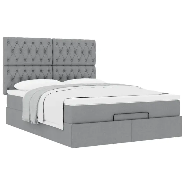 vidaXL Otomanski posteljni okvir z vzmetnico siv 140x200 cm blago