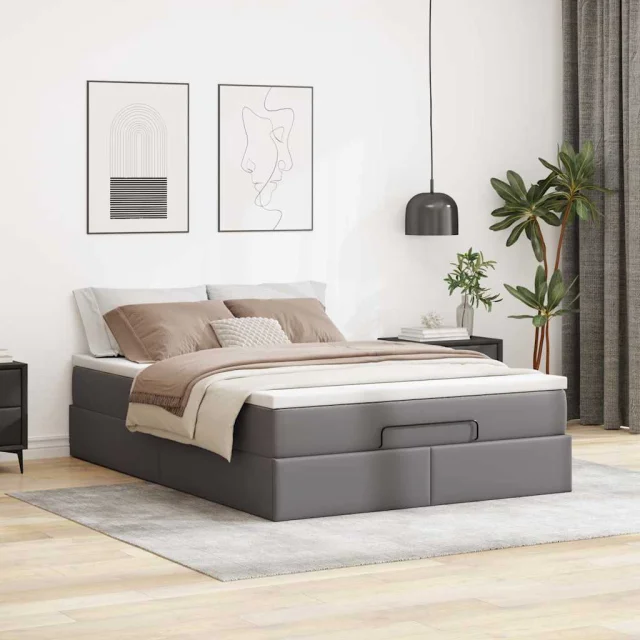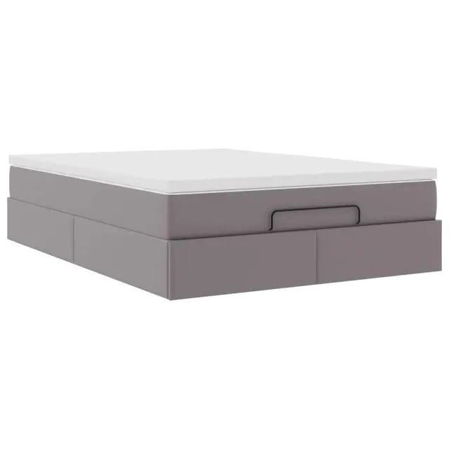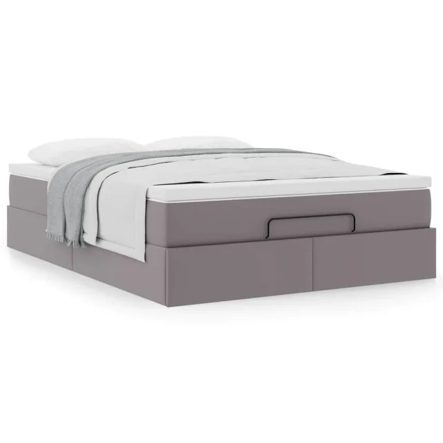 vidaXL Otomanski posteljni okvir z vzmetnico siv 140x200 cm um. usnje