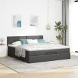 vidaXL Otomanski posteljni okvir z vzmetnico siv 160x200 cm blago