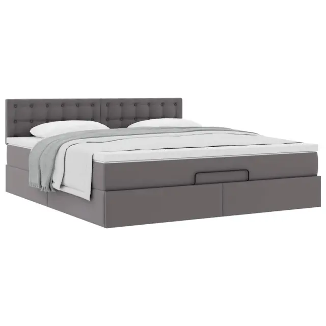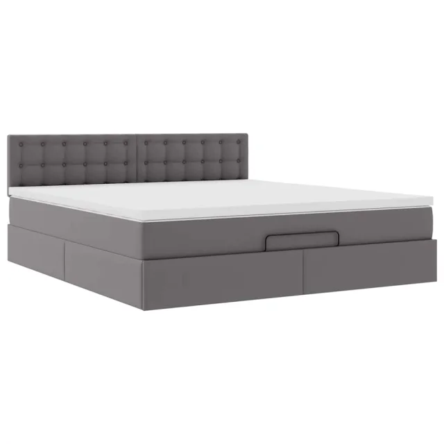 vidaXL Otomanski posteljni okvir z vzmetnico siv 160x200 cm um. usnje