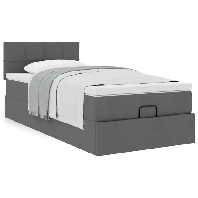 vidaXL Otomanski posteljni okvir z vzmetnico siv 80x200 cm blago