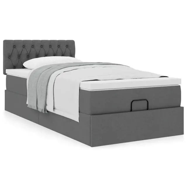 vidaXL Otomanski posteljni okvir z vzmetnico siv 80x200 cm blago